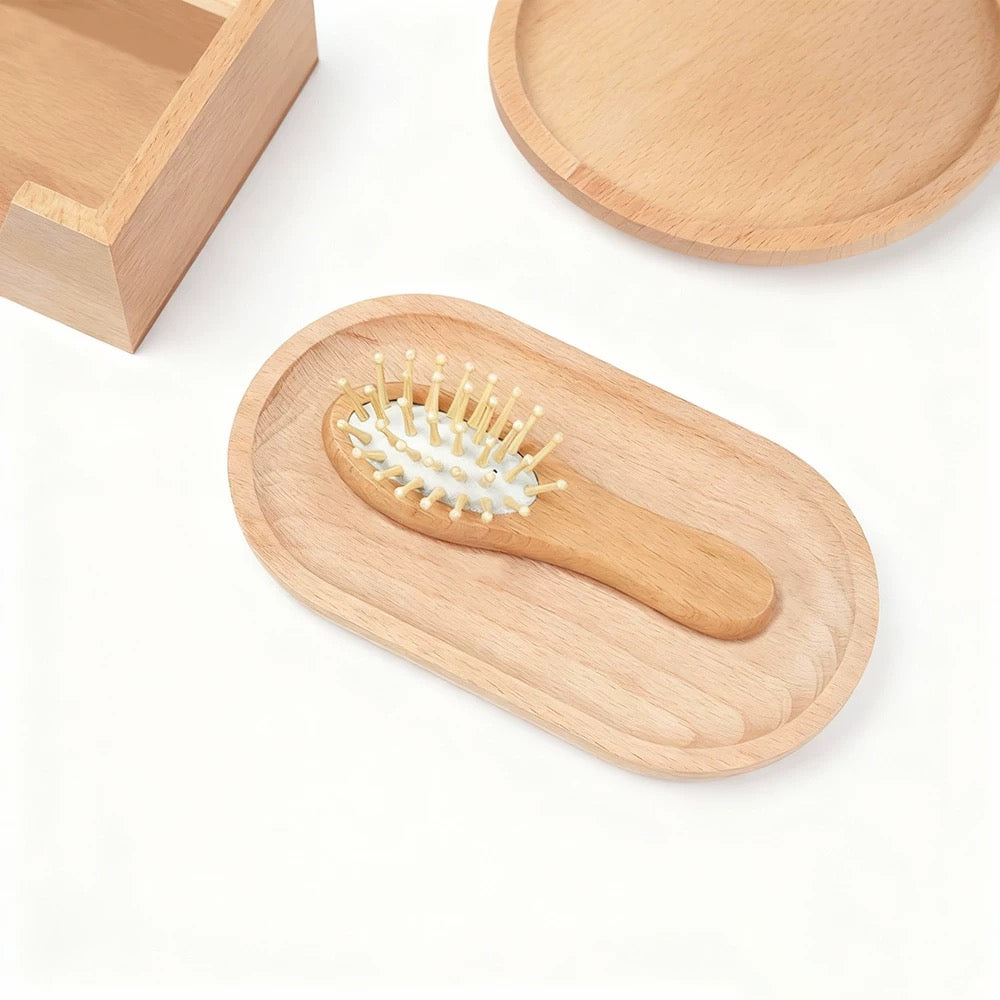- Cepillo para el cabello: este cepillo para el cabello para niños pequeños con mango de madera y cerdas naturales presenta un mango pequeño y fácil de agarrar que es perfecto para las manos de los niños pequeños.