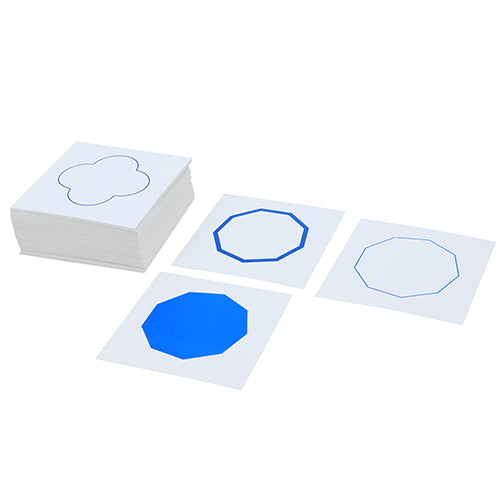 Three sets of 36 shape cards, with each shape depicted fully coloured,