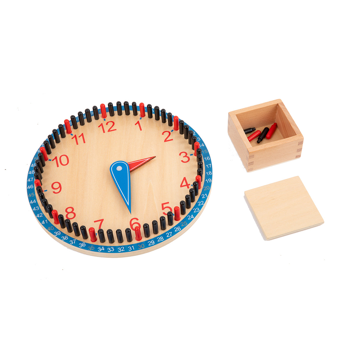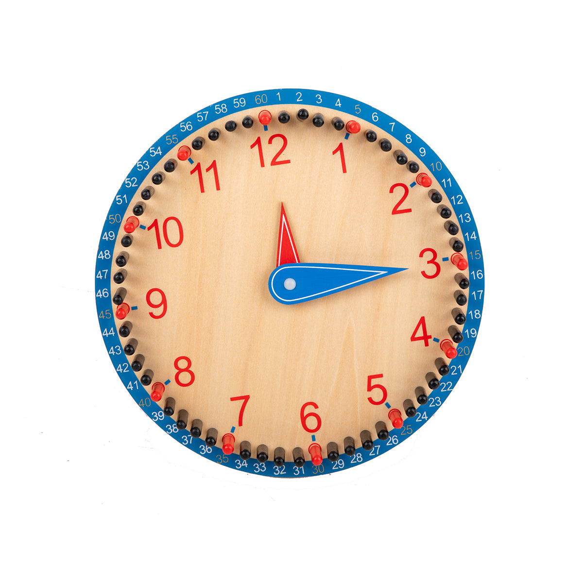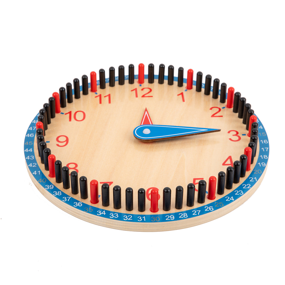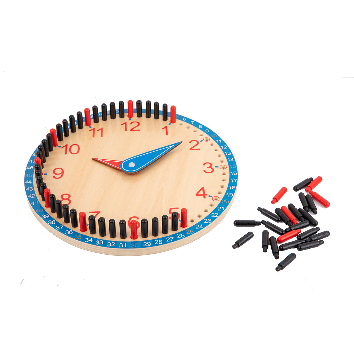 This clock features movable clock hands to help children understand the movement of time, while it included 48 black skittles and 12 red skittles to insert and skip counting.
