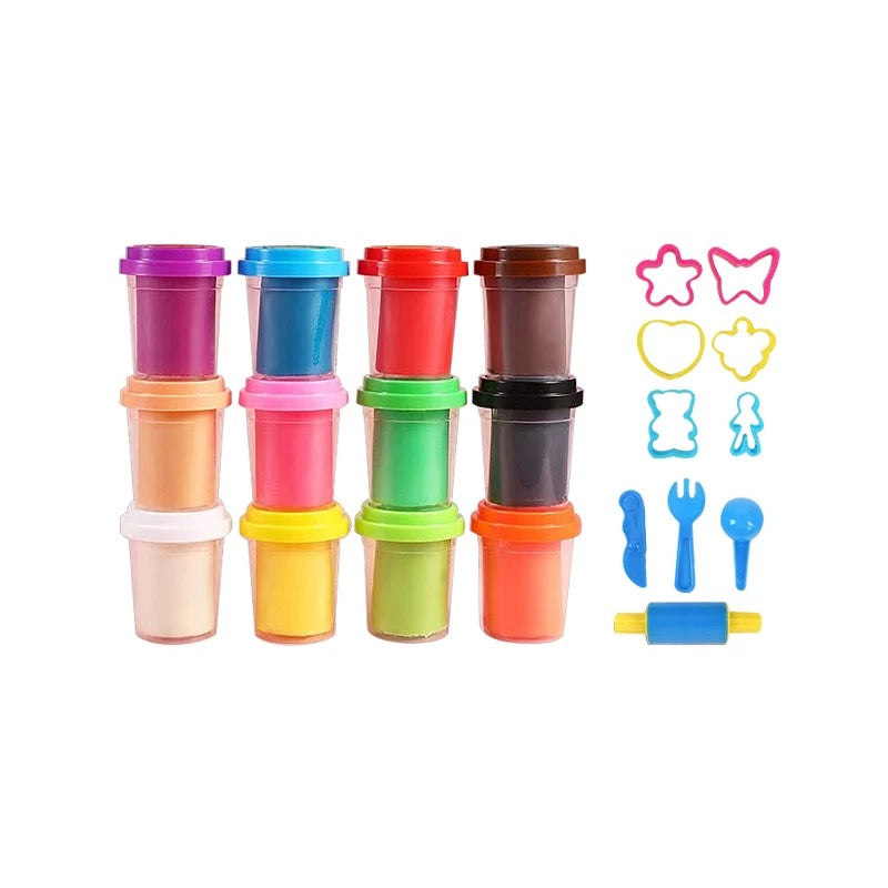 12 modeling clay in 12 colors, 4 clay tools, 6 animal and decorative