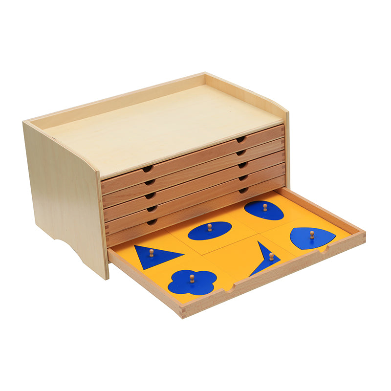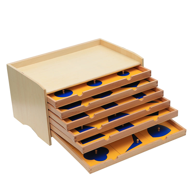 The geometric cabinet with 6 drawers containing 36 geometric insets and frames.