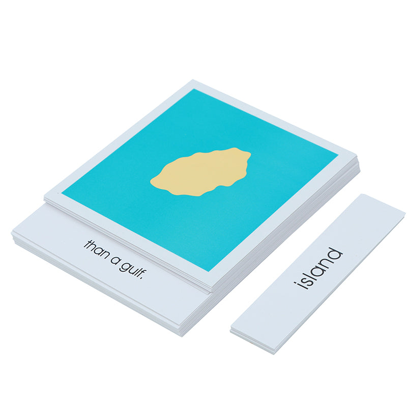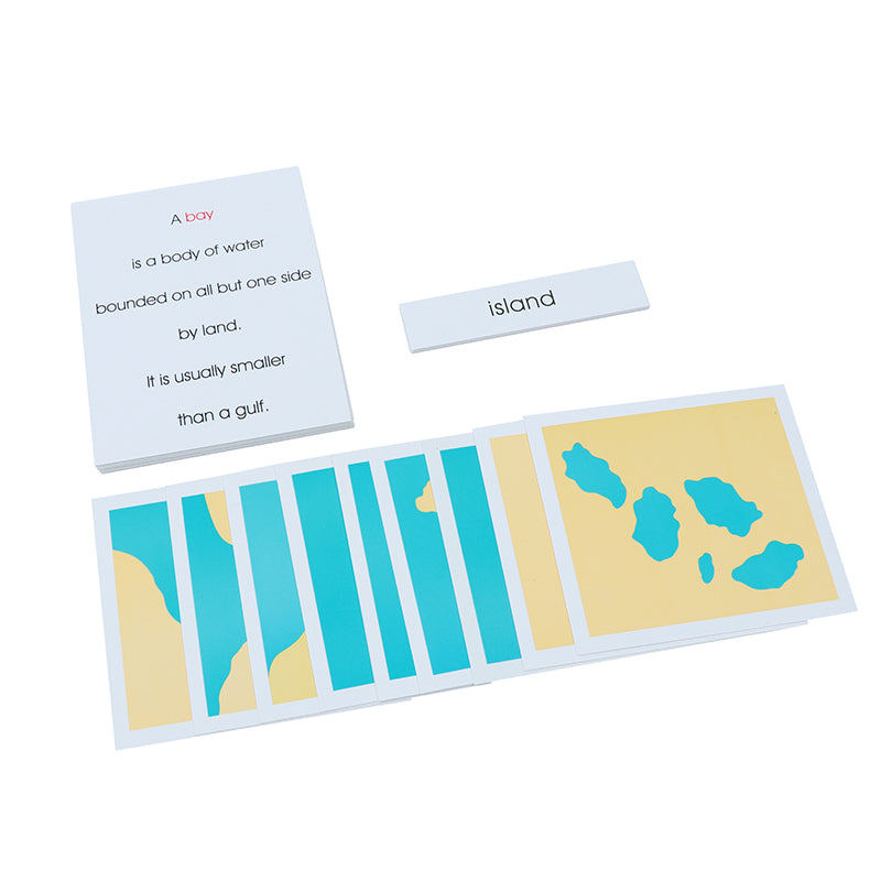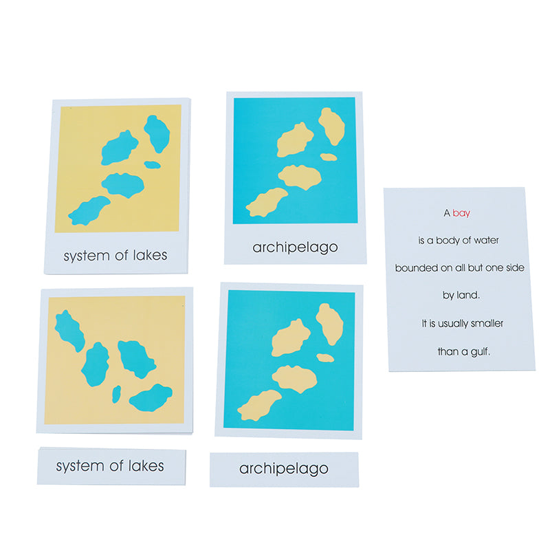Six sets of Land And Water Forms Cards for matching, vocabulary, nomenclature and definition sets I, II and III.