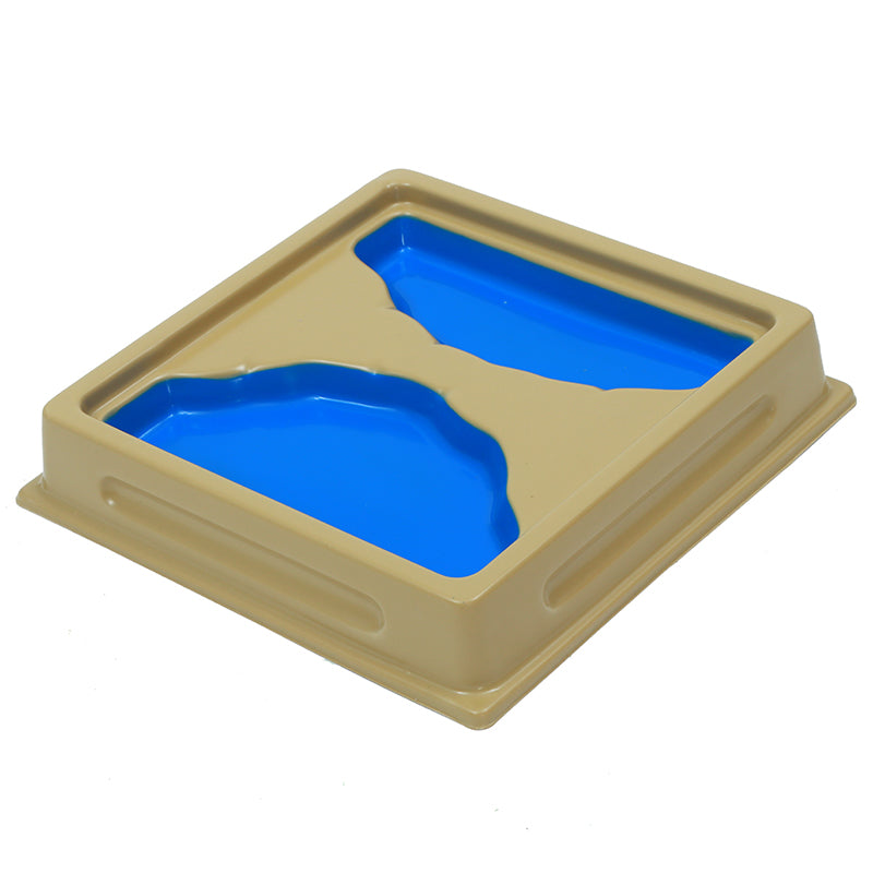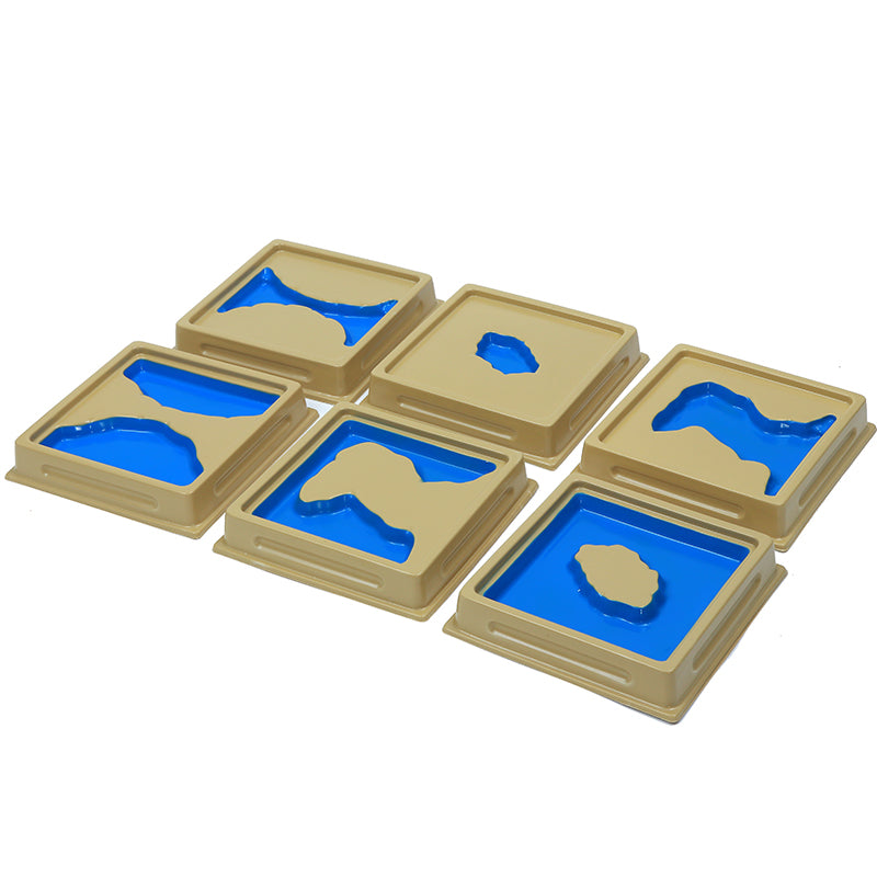 6 trays (20 x 20 x 4 cm) containing the following land and water forms: • Lake • Island • Gulf • Peninsula • Strait • Isthmus