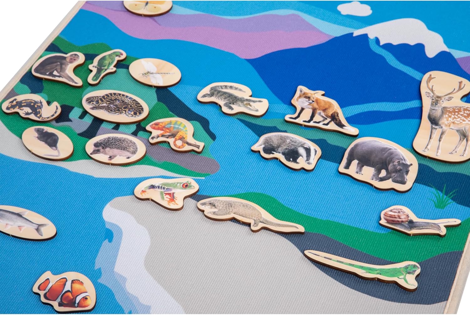 - 🦁Increase Understanding of the World - This set includes 25 beautifully crafted wooden animals that kids can move around the mat. This interactive element not only makes learning fun but also helps spark children's interest and desire to explore.