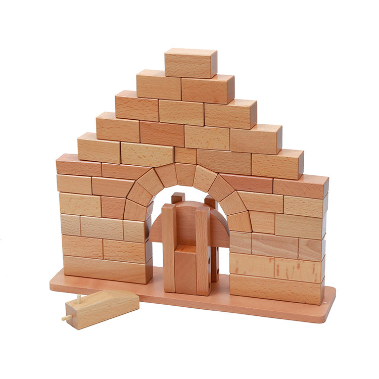 This ingenious representation of a classic design allows the builder to discover the principle of the keystone and its function in the support of an arch. Made from beech-wood.