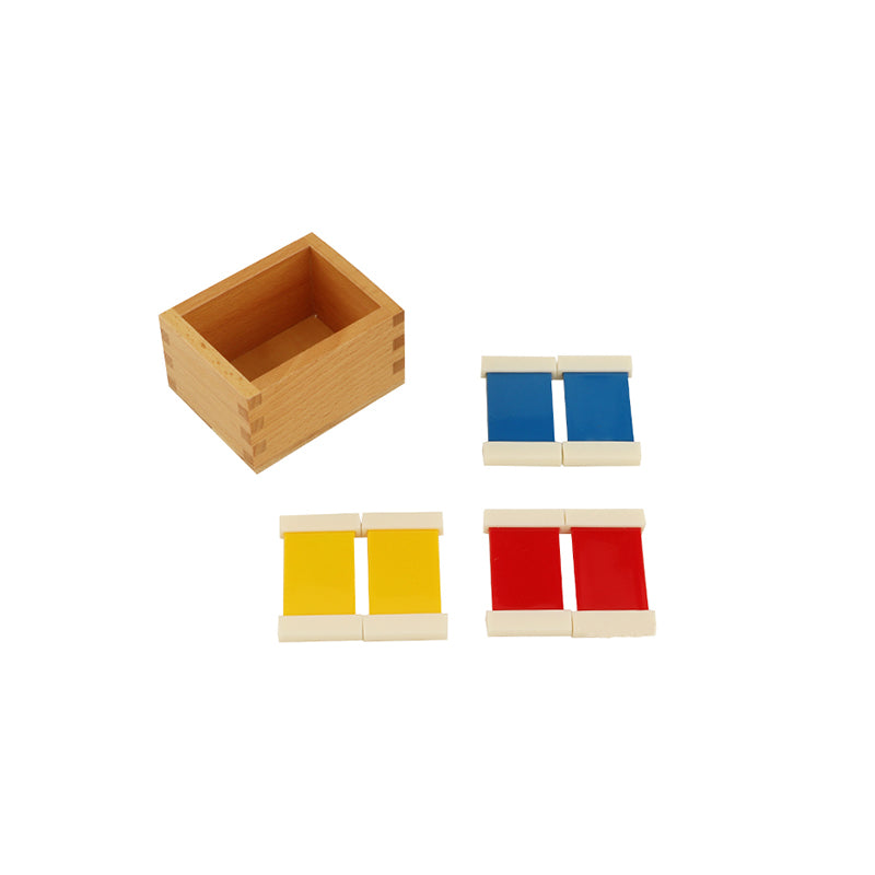 Color Tablets 1: 2 red, yellow and blue swatches; one wooden box.