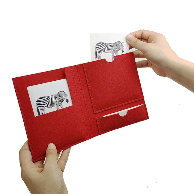 The holder has pouches that can only hold 1 card from a 3-Part Card Series. The materials is made from nonwoven fabric. Available in different colors.