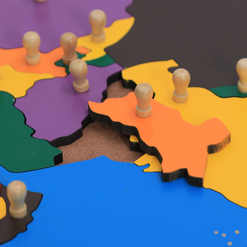 Our wooden puzzle maps are 57cm * 44.5cm with a wooden knob located at the capital of each state or country.