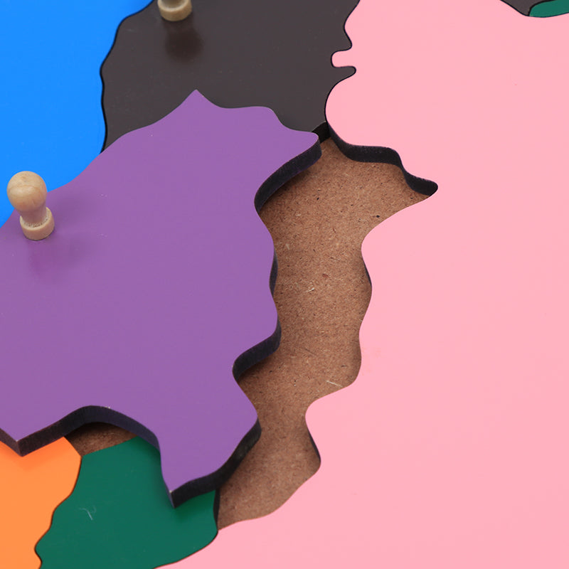 Our wooden puzzle maps are 57cm * 44.5cm with a wooden knob located at the capital of each state or country.