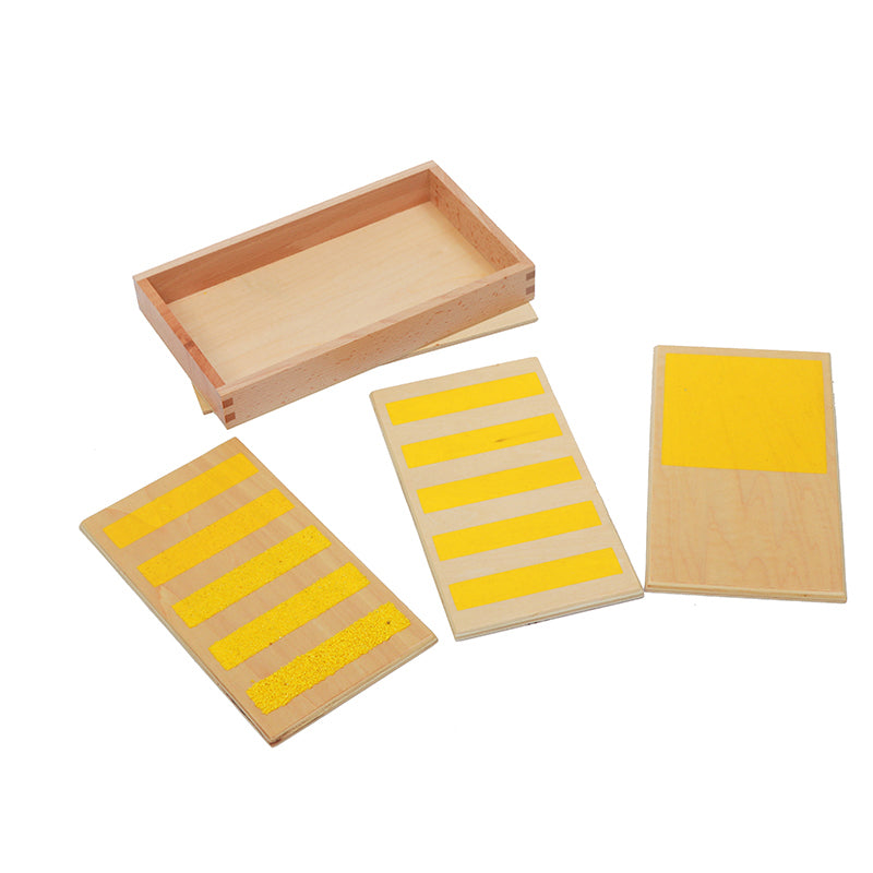 Set of 3 boards 24 x 13 cm contrasting rough and smooth sandpaper in a wooden box.